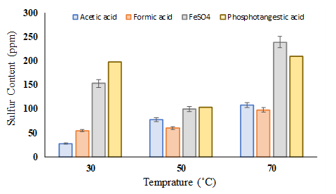 Figure 3. Temperature effect on the sulfur content at a time of 15 min.
