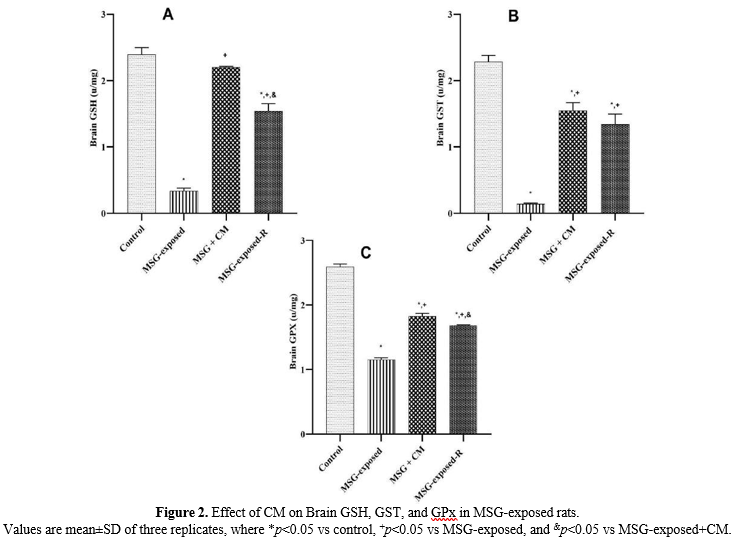 Effect of CM on Brain GSH, GST, and GPx in MSG-exposed rats