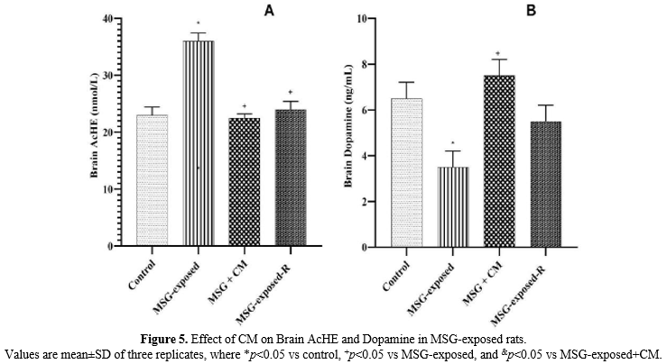 Effect of CM on Brain AcHE and Dopamine in MSG-exposed rats