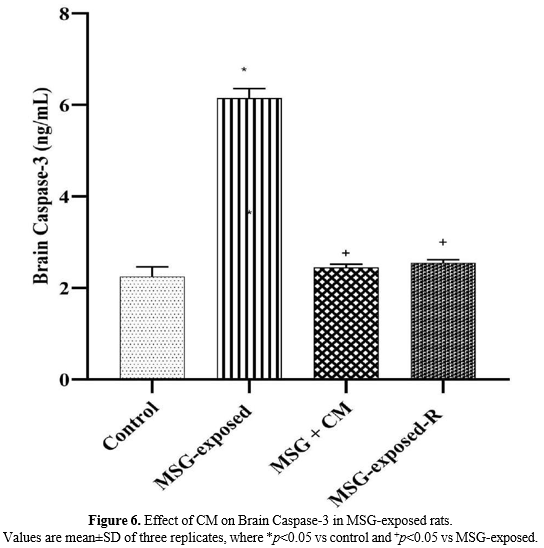 Effect of CM on Brain Caspase-3 in MSG-exposed rats